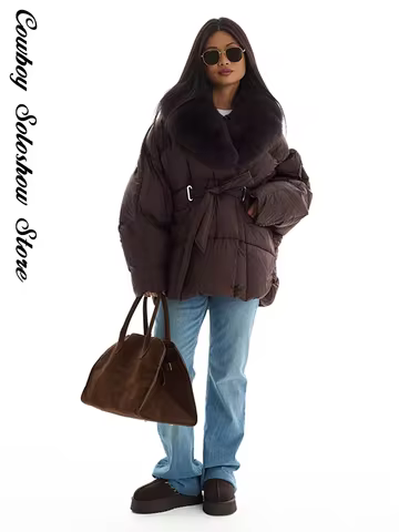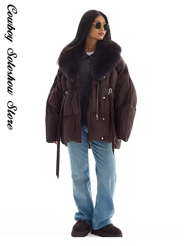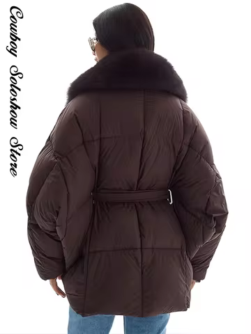 Women Faux Fur Collar Batwing Sleeve Padded Jacket Winter Warm Lace Up Pockets Jackets Lady New Daily Casual Fashion Outwear