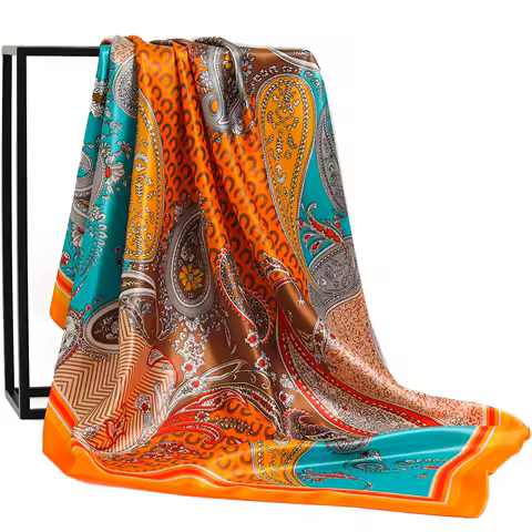 90*90cm Silk Scarf Women Print Hair Neck Square Office Ladies Shawl Bandanna Muslim Hijab Handkerchief Muffler Foulard female