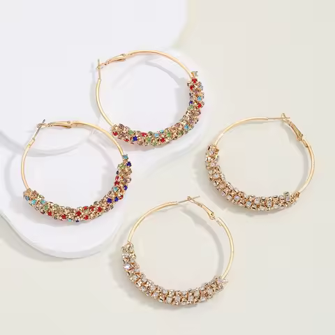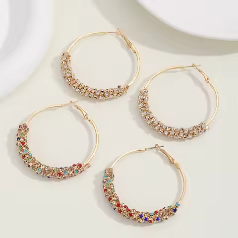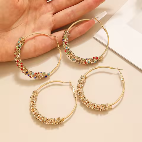 New Large Crystal Hoop Earrings Matte Fashion Simple Round Shiny CZ Big Earring Jewelry For Women Party Gift