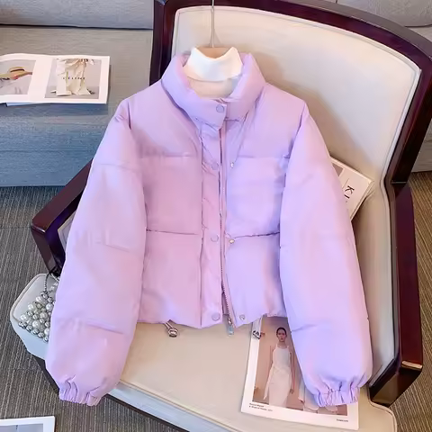 Fashion Short Cotton Jackets 2023 Women's Winter Warm Stand Collar Long Sleeve Tops Casual Silm Fit Outwear Trend Parkas Coats