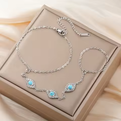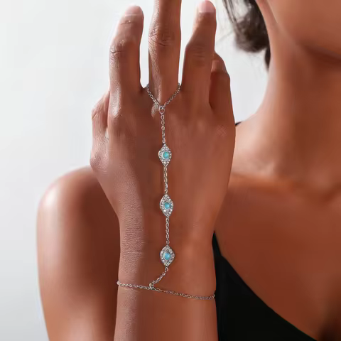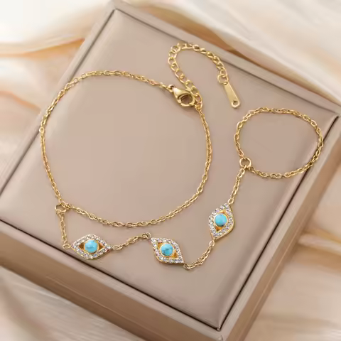 Skyrim Turquoise Clear Zircon Evil Eye Charm Finger Bracelets Women's Stainless Steel Bracelet Amulet Jewelry Christmas Gifts