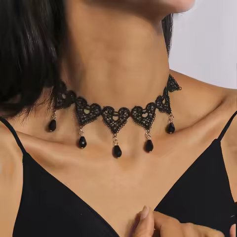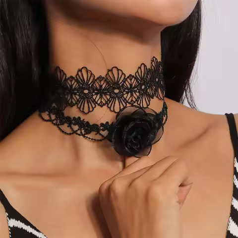 Aihua Gothic Black Lace Necklace for Women Boho Sexy Lace Velvet Choker Necklace Tattoo Steampunk Collar Party Jewelry Gifts