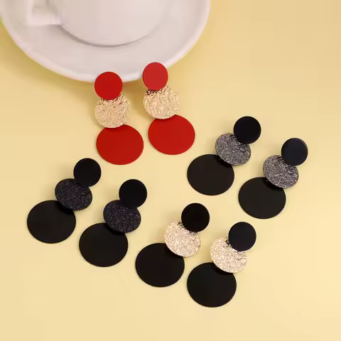 Fashion Creative Metal Splicing Round Drop Earrings for Women Exaggerated Gold Color Long Geometric Tassel Earrings Jewelry