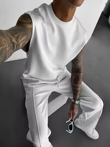 2025 Summer new men's sports fashion casual pants vest set loose sleeveless T-shirt solid color set