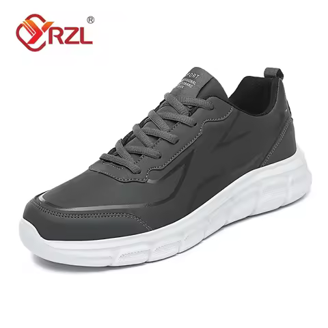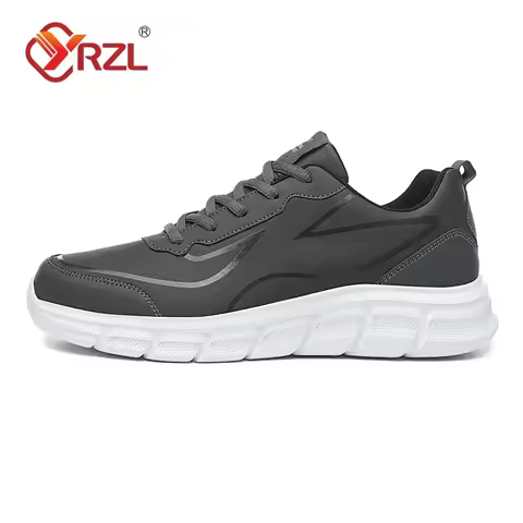 YRZL Black Running Shoes Leather Waterproof Athletic Sneakers Men Wear-resistant Men Walking Sport Shoes Comfortable Men Shoes