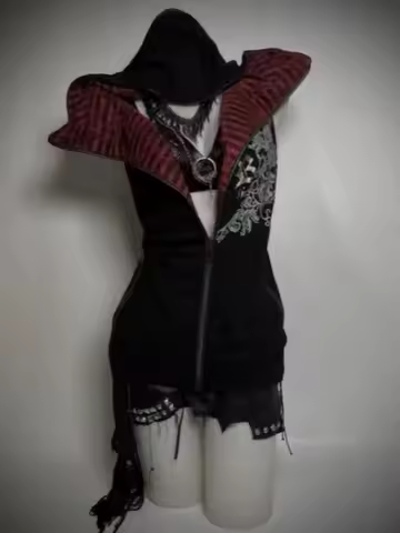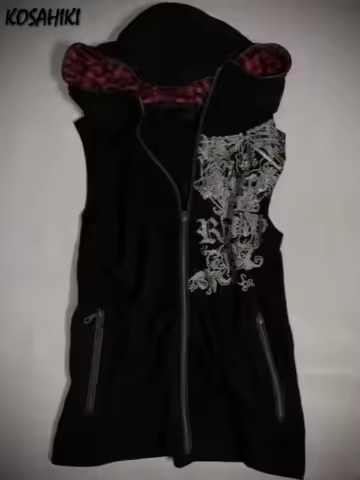 Harajuku Casual Women Printing Vest Coat Grunge Streetwear Sleeveless Patchwork Hooded Coats Y2k Aesthetic Zipper Pocket Jackets