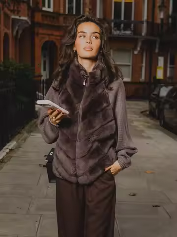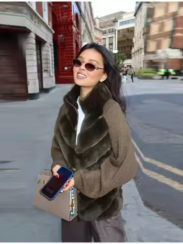 Women Chic Faux Fur Patchwork Short Jacket Cause Full Sleeve Loose Zipper Furry Warm Quilted Coat 2025 Lady Winter Street Wear