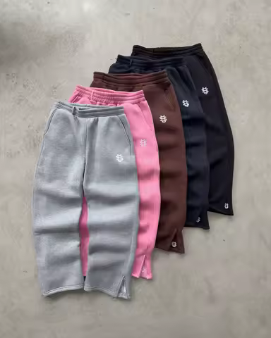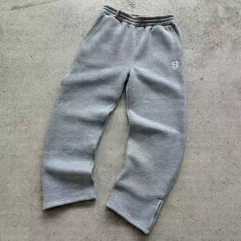 Y2K Fashion Jogger Sweatpants Loose Embroidery Labeled Open Leg Wide Leg Pants Trendy Pocket Couple Straight Pants Men's Hoodie