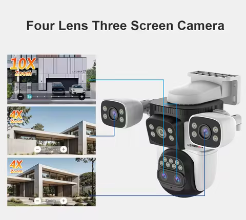 LS VISION Wireless WiFi Camera, 10K, 20MP, Outdoor, 10X Zoom, Four Lens, 720 ° PTZ, Automatic Tracking, Waterproof CCTV Cam