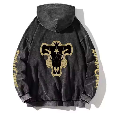 Black Clover Hoodie Black Bull Logo Print Sweatshirt Women Men Clothing Long Sleeve Streetwear Washed Cotton Hooded Pullover
