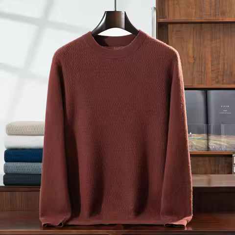 Men's 100% Cashmere Round Neck Sweater Light Luxury Casual Loose Long-Sleeved Knitted Pullover 2025 Autumn Winter Jumper Clothes