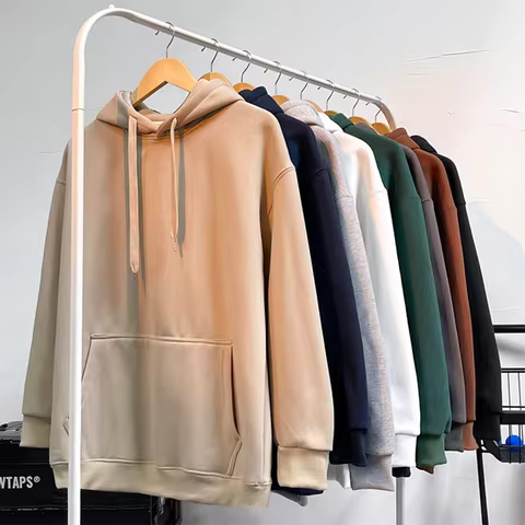 500gsm Mens Heavy Cotton Fleece Hoodies for Winter Oversized Solid Customized Hooded Pullover Unisex Loose Fit Street Jumpers