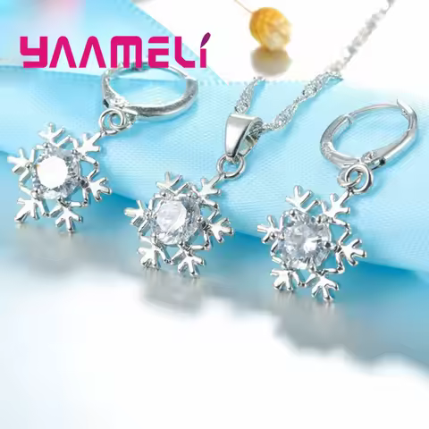 Qualified Snowflake Women 925 Sterling Silver Jewelry Set Zircon CZ Crystal Pendant Necklace Earrings Party Gift