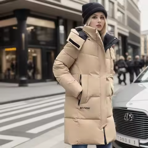 2024 Winter Long Down Cotton Jacket Women Korean Fashion Solid Warm Hooded Parka Zipper Loose Casual Snow Wear Coat Oversized