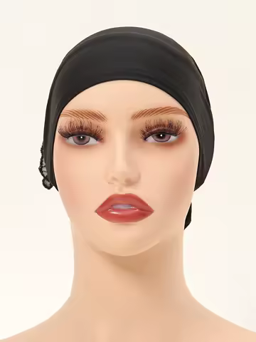 Muslim Women's Hijabs with Lace Chiffon Panhua Solid Color Thin Bottom Hat Islam Head Wrapping Tie Back Turban Female Headband