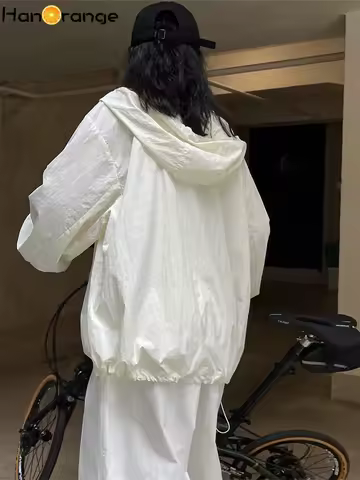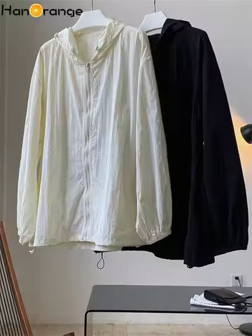HanOrange 2024 Summer Light Transparent Hooded Zipper Sunscreen Jacket Women Loose Silhouette Thin Long Sleeve Jacket Female'