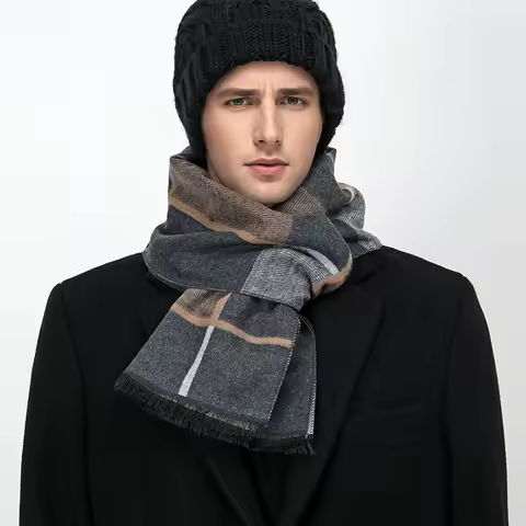 Luxury Winter Man Scarf Plaid Shawl Warm Autumn Cashmere Handkerchief Soft Outdoor Muffler Bufanda Solid Man Scarf 2025
