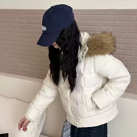 2025 Winter New Warm Short Loose Fur Collar Parkas Women's Korean Trendy Harajuku Casual Simple Hooded Jacket Windproof Jacket