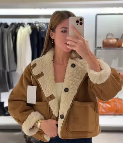 Women's Reversible Lamb Woolen Jackets Short Loose Stand Collar Coats Warm Single-breasted 2025 Commute Office Lady Outerwears