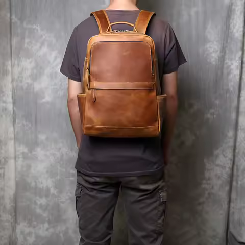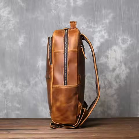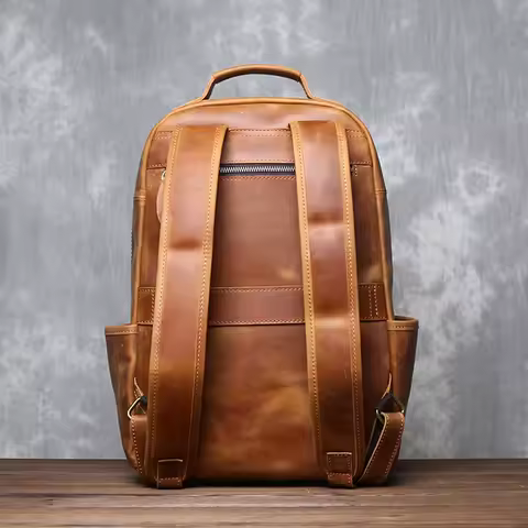 Men's Vertical Genuine Leather Backpack With Retro Classic Top Layer Cowhide Large Capacity Computer Bag JLFGPJ