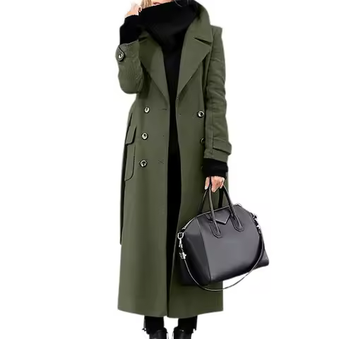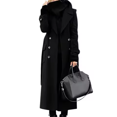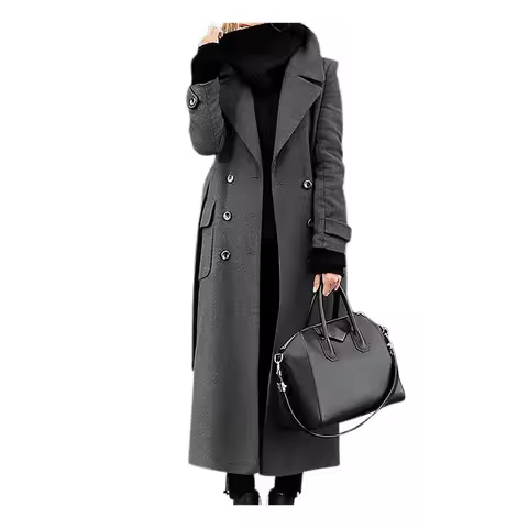 Women Woollen Overcoat Double-breasted Cardigan Mid-calf Length Long Sleeves Jacket Slim OL Formal Coat