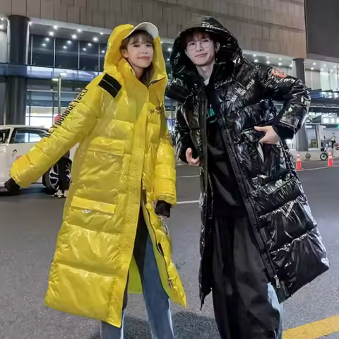 2025 with Cap Parkas Wash Down Jacket Women Mid-length Over Knee Warm Big Bright White Duck Down Winter Coat Long Tide Outwear