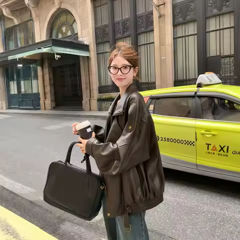 New American Retro Cool Letter Patch Short Locomotive PU Leather Jacket Small Stand Collar Slim Autumn Upper Garment Ins Female