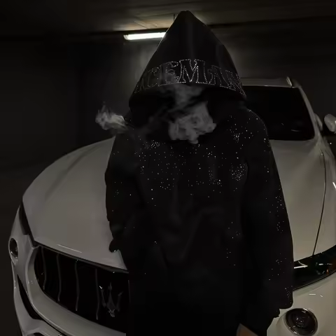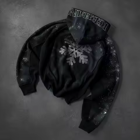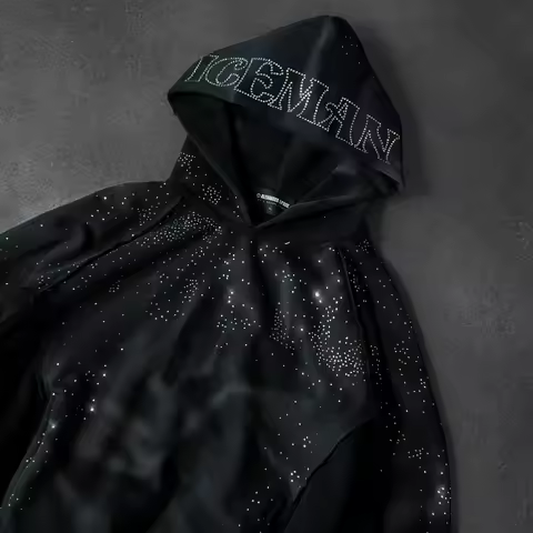 Y2k Iceman Hoodie Sparkling Rhinestone Inlay Couple Sweatshirts High Street Retro Hip Hop Streetwear Unisex Boxy Casual Hoodie