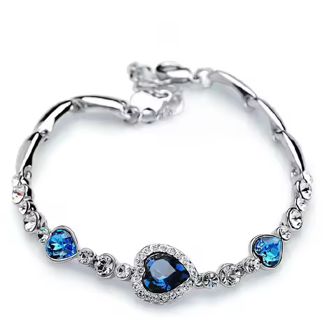 Women's Bracelet Earring Necklace 3 Piece Set of Peach Heart Blue Crystal Zircon Jewelry Set Women's Wedding Engagement Jewelry