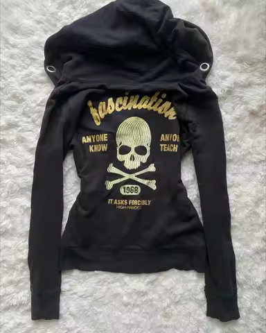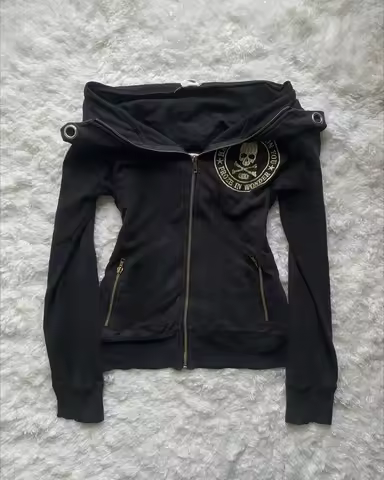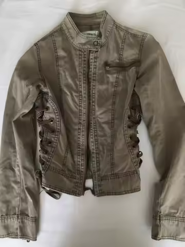 Y2K Retro Army Green Zipper Jacket Women Harajuku Sexy Slim Fit Denim Jacket Autumn Winter Short Stand Collar Coat Goth Clothing