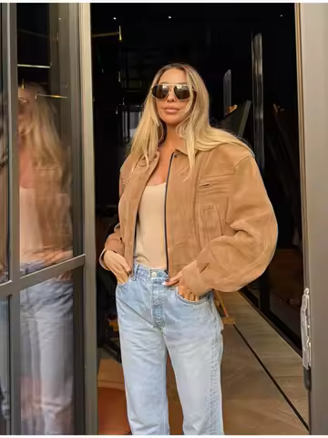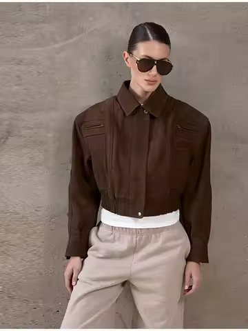 Women Retro Fashion Suede Short Jacket Casual Solid Lapel Zipper Long Sleeve Coats 2025 Autumn Versatile Classic Street Outwears
