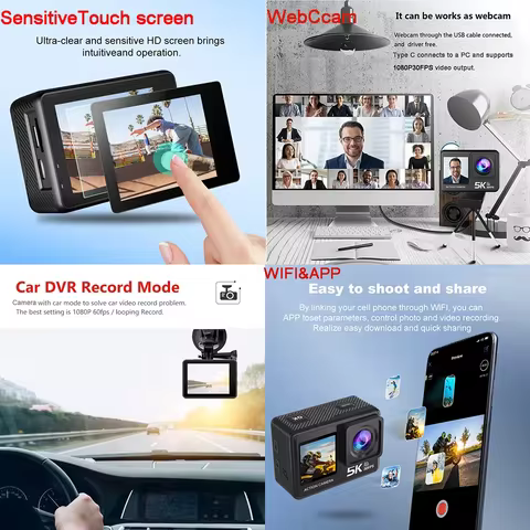 G9SE Action Camera 5K30fps 4K60fps 50MP 2.0 Touch LCD EIS DVR Webcam Dual Screen Wi-Fi 170D Waterproof 30M 5X Zoom Sports Camera