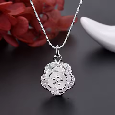 Fine 925 Sterling Silver Charm Flower Necklace Earring Bangle Jewelry for Women Retro Set Wedding Gift TRENDY Lovely