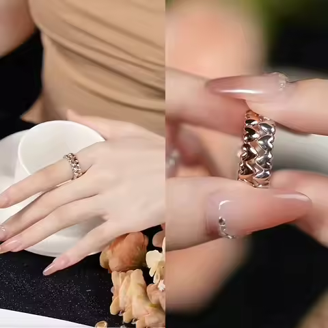 Fashionable 925 Sterling Silver Tri Color Connected Heart&Interwoven&Sliding Heart&Organic Double-layer Ring Couple Style Jewelr