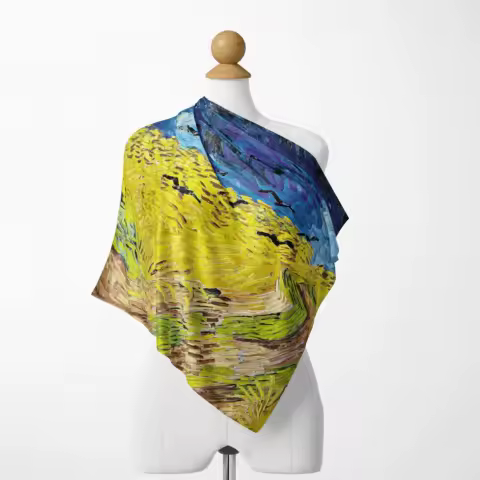 70CM*70CM Van Gogh Oil Painting Fashion Scarves for Women Print Silk Satin Hijab Scarf Female Luxury Brand Square Shawl Scarfs