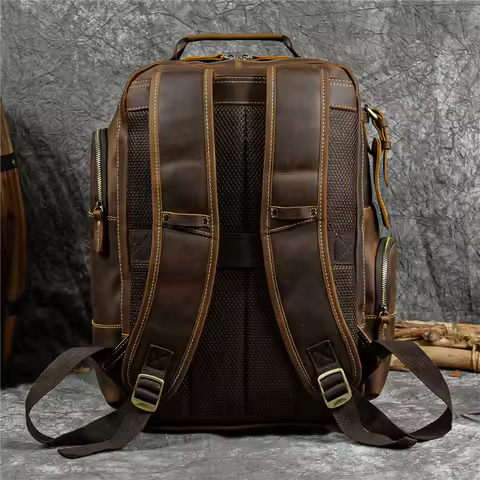 Newsbirds men's leather backpack retro luxury fashion style bagpack travel bag backpack school bag for man leather daypack men