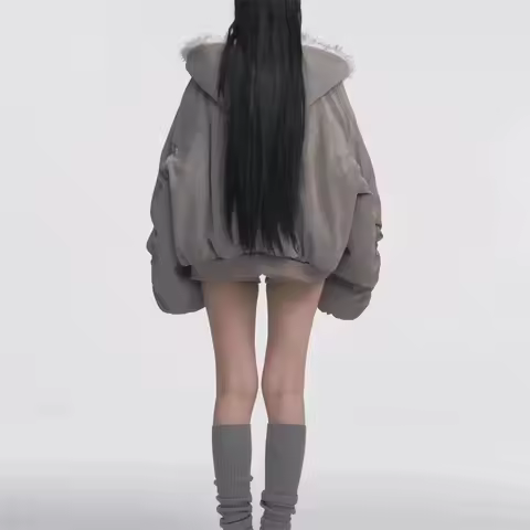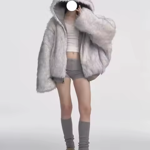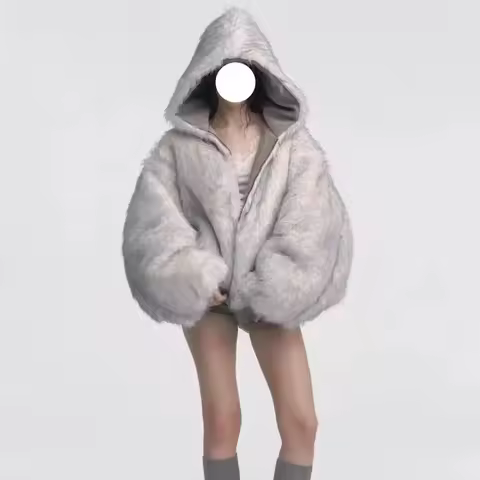 Women Parkas Gary Dyed Pointed Suede Hooded Jacket Coat Winter American Double-sided Environmentally Friendly Faux Fur Quilted J