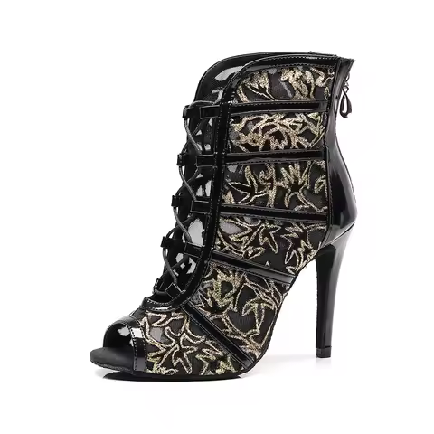 DKZSYIM Latin Dance Shoes High Top Women Ballroom Dance Boots Soft Soles Ladies Tango/Salsa Mesh Dance Shoes High Heels 6-10 CM