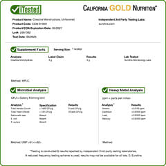 California Gold Nutrition, Sport, Creatine Monohydrate, Unflavored, 1 lb (454 g)