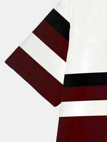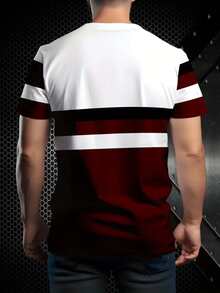 Men's Stylish 3D Printed Striped T-Shirt - Retro Round Neck Short Sleeve Casual Top, 100% Polyester, Machine Washable, All-Season Comfort Fit, Comfortable Pullover | Bold Color Contrast | Polyester Tshirt