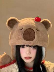 Women's Plush Winter Hat, Washable, Cute Cartoon Capybara Design, Suitable For Back To School And Casual Outings, Handmade Japanese Plush Capybara Hat, Thick Ear Protection Knitted Hat For Women In Autumn And Winter, Animal Design Beanie