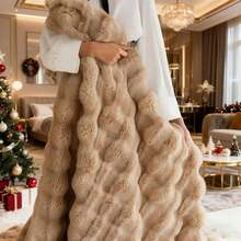 1pc Thick, Oversized Tufted Faux Rabbit Fur Fleece Blanket, Plush Milk Plush Flannel - Soft, Non-Shedding, Anti-Static, Double-Sided Warmth, Versatile Use As Office Nap Blanket, Sofa Throw, Travel Car Blanket, Air Conditioning Blanket, All-Season For Whole Family