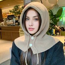 1pc Knitted Hat And Scarf Set, 2-In-1 Thick Neck Warmer Hooded Hat, Autumn/Winter Warm Ear Protection