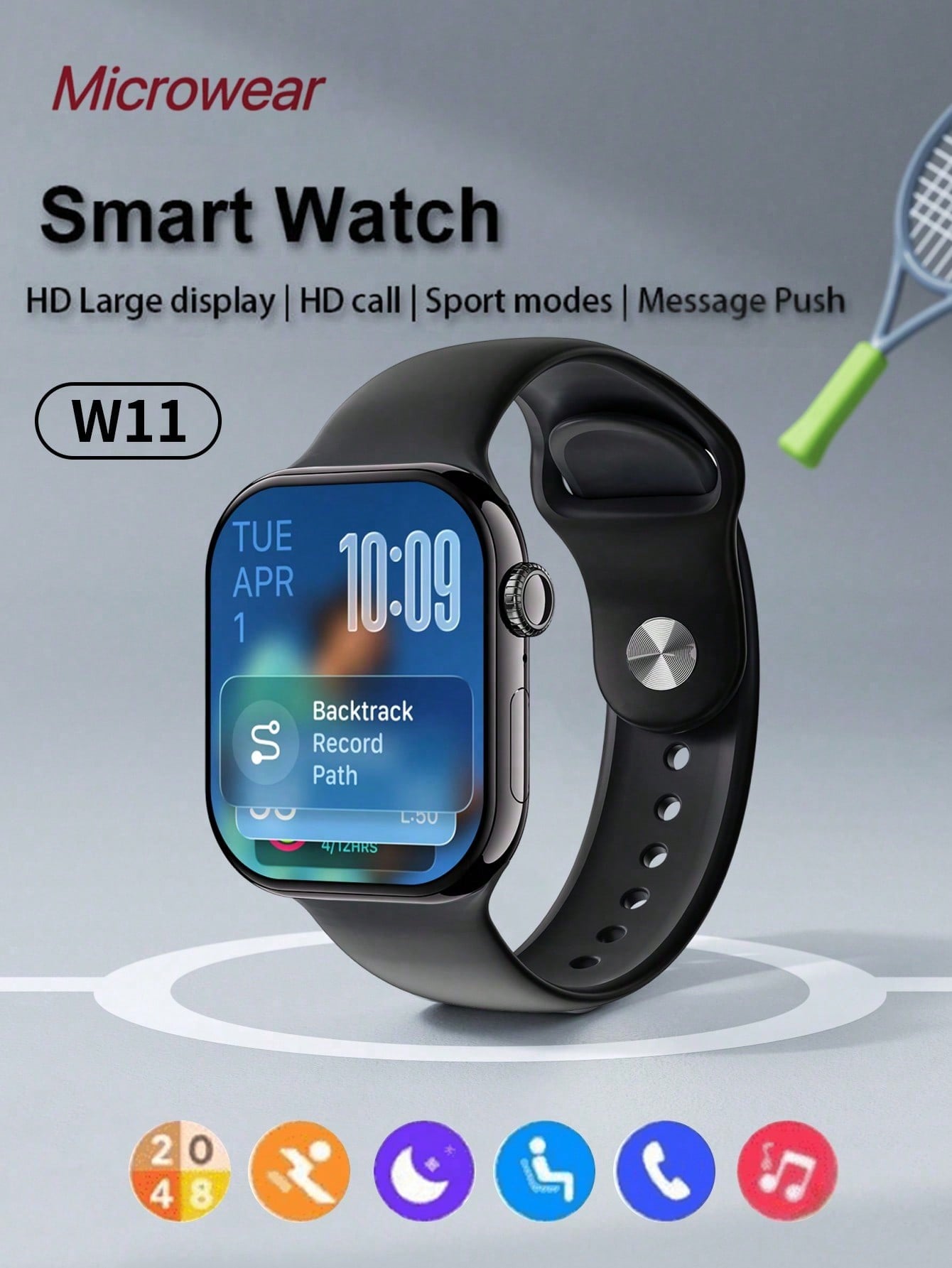 Microwear Smart Watch For Men Women Compatible With IPhone Samsung Android Phone 2.07 Inch Full Touchscreen Fitness Tracker With Bluetooth Calling, Fitness Watch With Heart Rate/Sleep Monitor, IP68 Waterproof Smartwatch