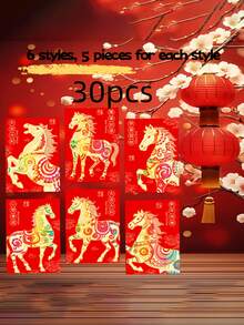 Chinese New Year Lucky Horse Red Envelopes - 6 Unique Designs With Golden Foil, Festive Paper Bags For Celebrations, Ideal For Gifting And Festive Occasions, Festive Gift Bags|Decorative Envelopes|Paper Envelopes